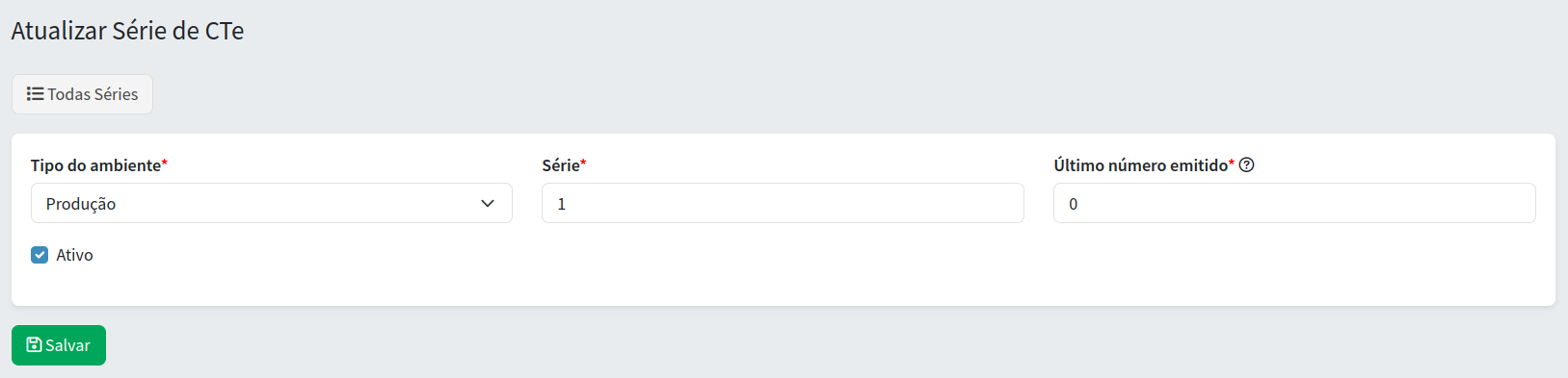Configure uma nova série ou número de emissão e clique em "Salvar":