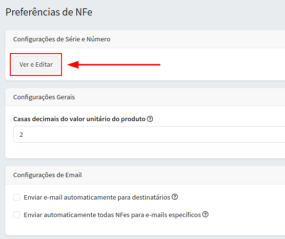 Nas preferências, clique no botão "Ver e Editar", em Configurações de Série e Número: