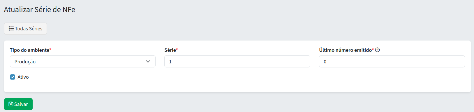 Configure uma nova série ou número de emissão e clique em "Salvar":