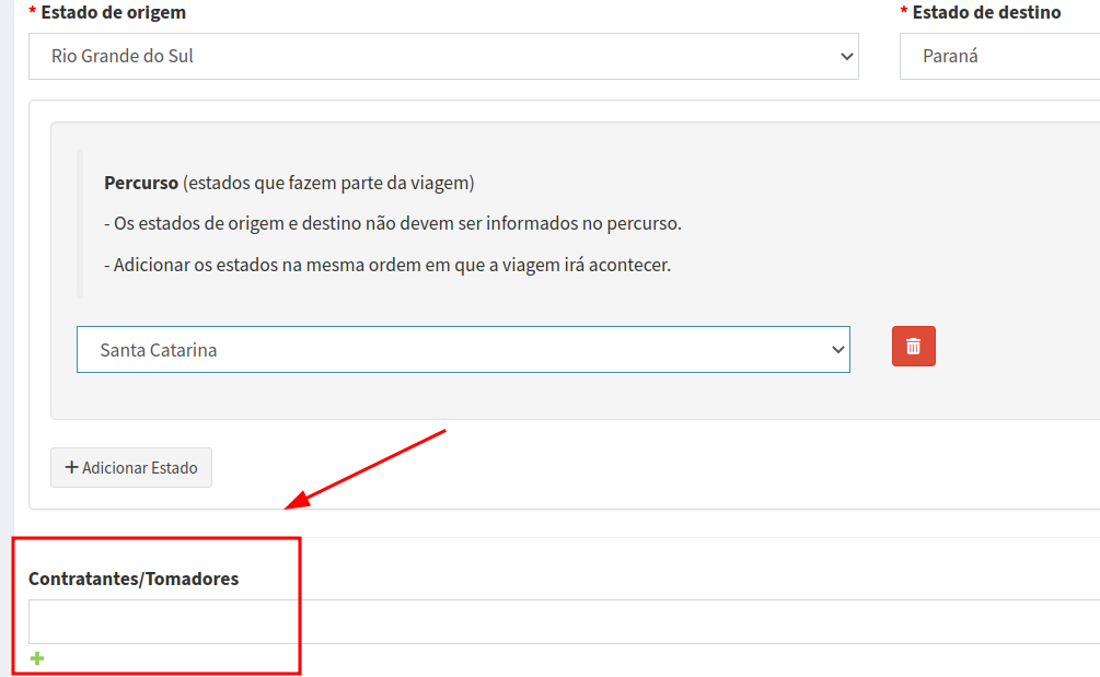 O que preencher no campo Contratantes/Tomadores:
