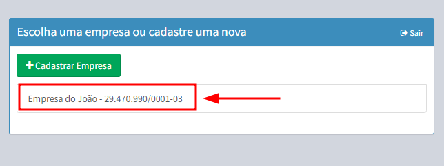 3. Agora que a empresa está criada, basta clicar no nome da empresa para entrar no sistema, conforme mostra imagem abaixo.