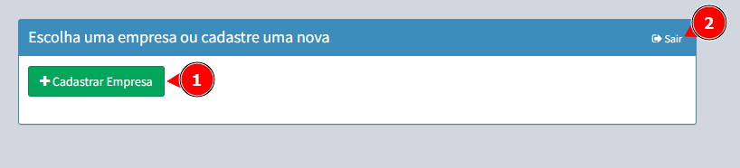 1. Clique em Cadastrar Empresa (1) ou se precisar trocar de usuário pode clicar em Sair (2).