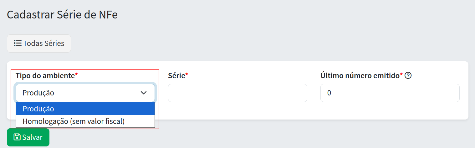 Passo 5: Após selecionar o tipo de ambiente, clique no botão verde "Salvar".