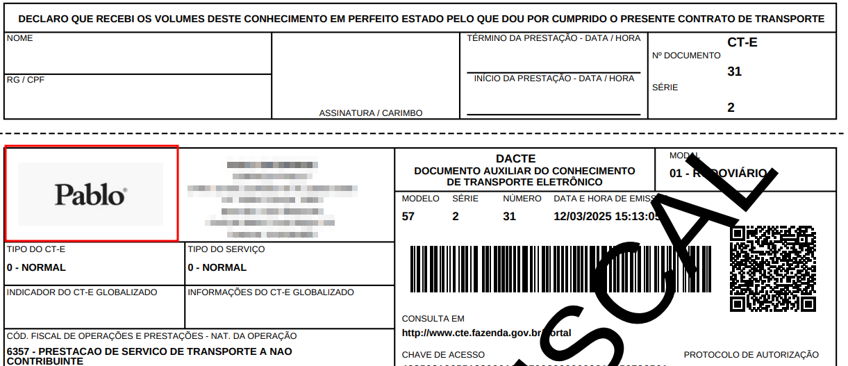 Verifique como ficou a logo da sua empresa clicando em algum documento fiscal como o CTe e vá até Ações > Imprimir DANFE ou Imprimir Documento.
