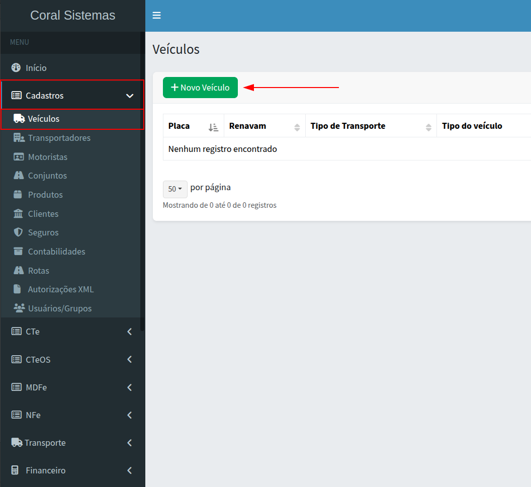 Para alterar algum veículo já cadastrado basta ir no menu lateral em Cadastros > Veículos > Veículos.
