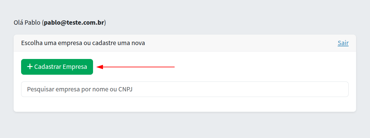 Vai aparecer uma tela com a lista de empresas que já tem cadastrada no seu usuário e então um botão para Cadastrar Empresa. Basta clicar no botão, conforme aponta a imagem abaixo.