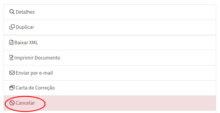Ao clicar em Cancelar o sistema envia a requisição para a SEFAZ (Secretaria da Fazenda) do seu estado. A SEFAZ vai analisar o pedido de cancelamento e retornar uma mensagem. Se der tudo certo o status vai mudar para cancelado, caso contrário vai aparecer uma mensagem informando o motivo de não ter cancelado.
