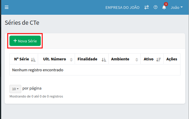 Caso ainda não tenha nenhuma série cadastrada ou precisa por algum motivo ter um controle separado por séries, pode clicar em Nova Série para criar uma nova, conforme mostra a imagem abaixo.