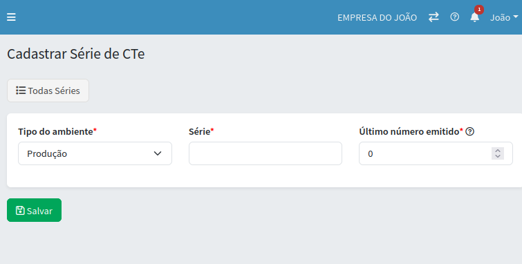 Pode alterar o campo série e/ou número de acordo com o que precisar e depois clicar em Salvar.