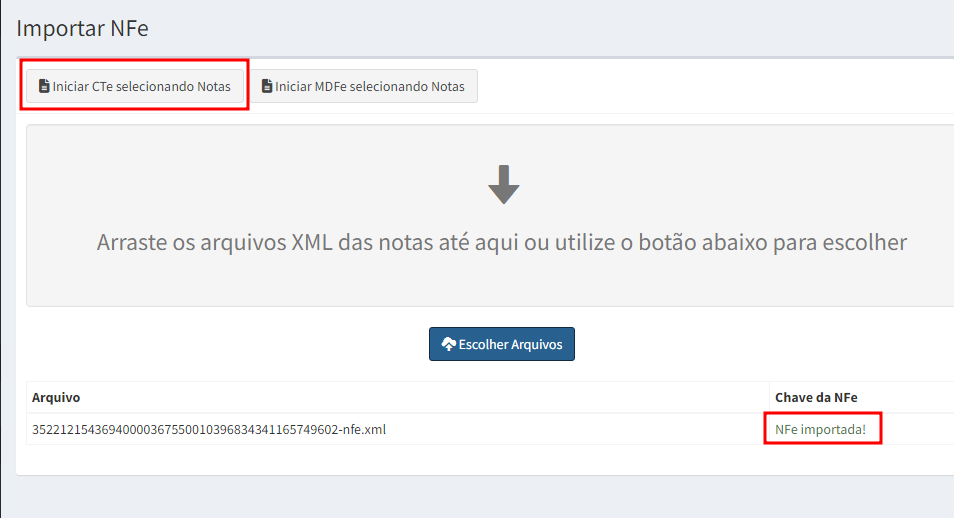 Caso você não tenha o arquivo XML da NFe, acesse esse passo a passo: Como emitir um CTe sem usar o arquivo XML da NFe.