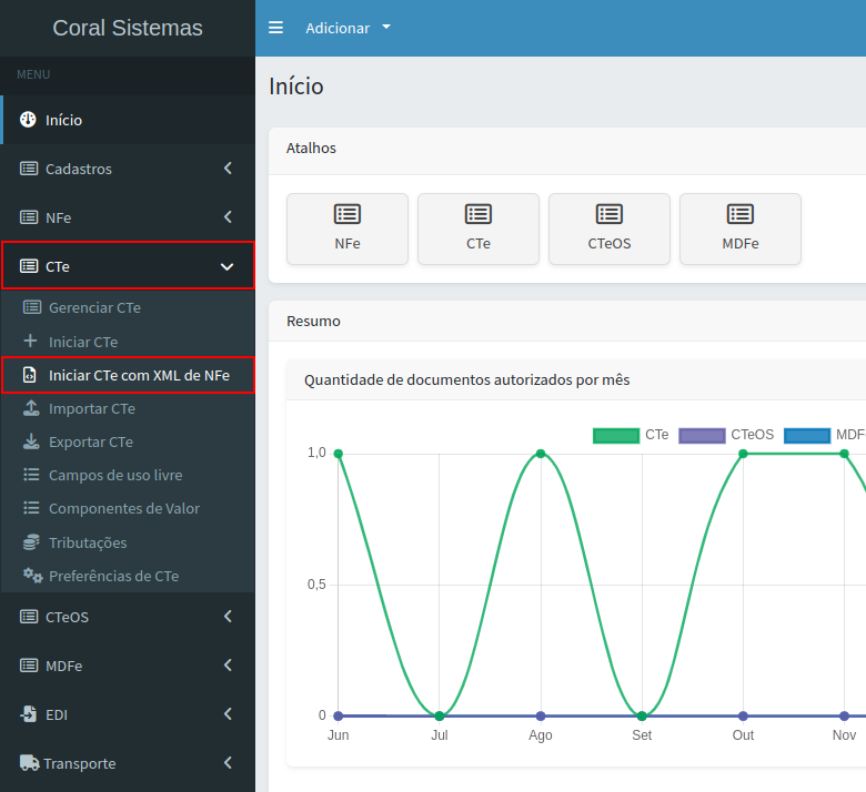 No sistema, existem duas formas de emitir um CTe: