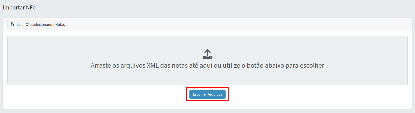 Após a importação, clique no botão "Iniciar CTe selecionando notas”: