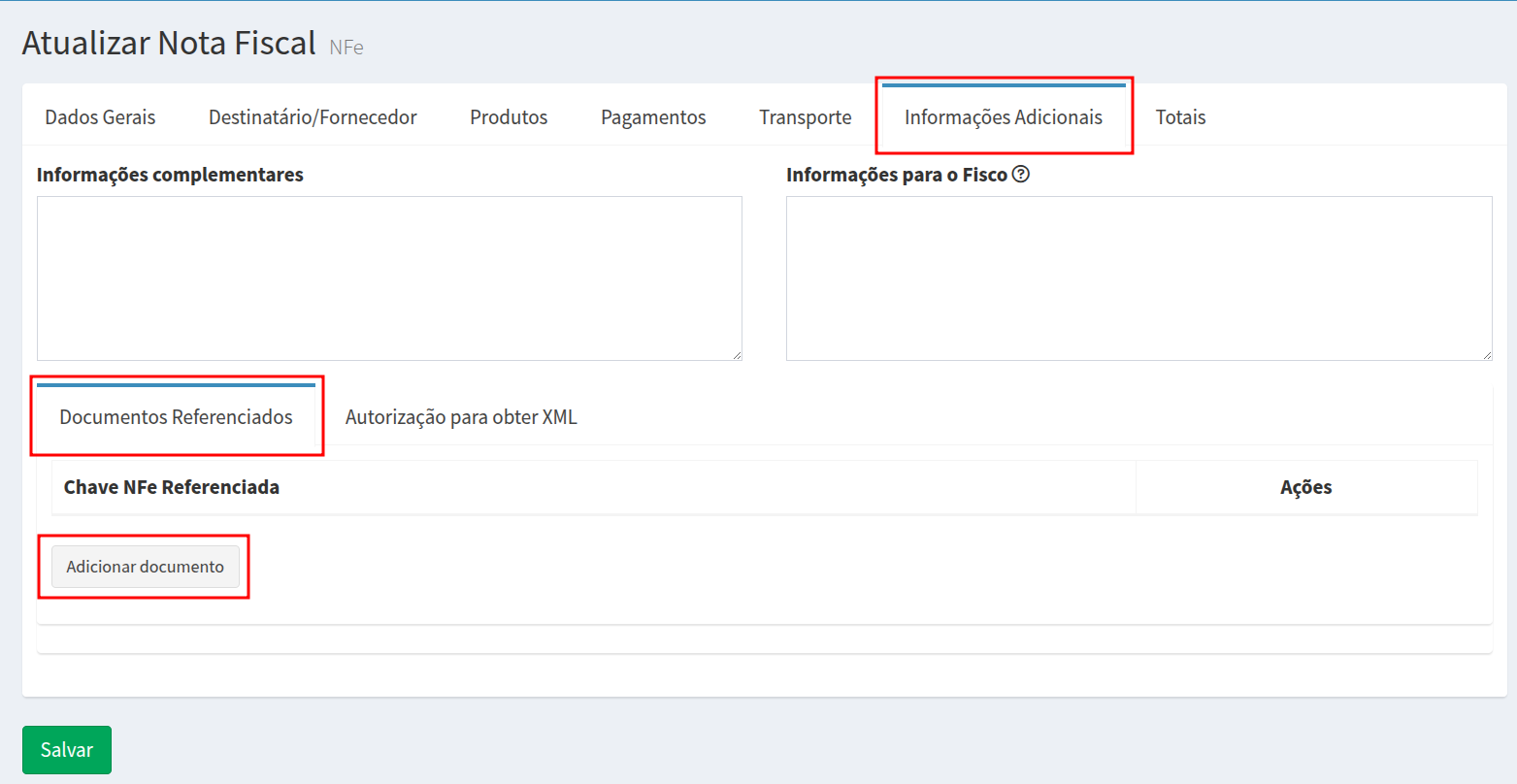 Documentos Referenciados / Chave NFe Referenciada: Serve para vincular a NFe atual a uma NFe anterior. Isso é útil em situações como, devolução de mercadoria quando uma venda precisa ser devolvida e a nova NFe faz referência à original. Complementação se for necessário corrigir ou complementar valores de uma nota já emitida.