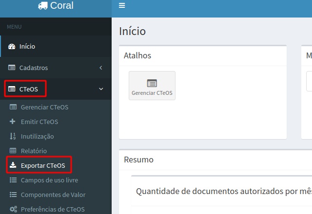 No menu lateral, clique na opção CTeOS e então na opção Exportar CTeOS