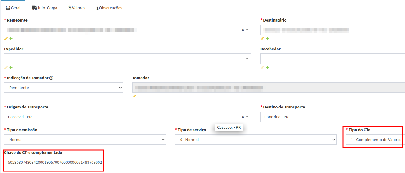 Como fazer CTe de Complemento de Valores