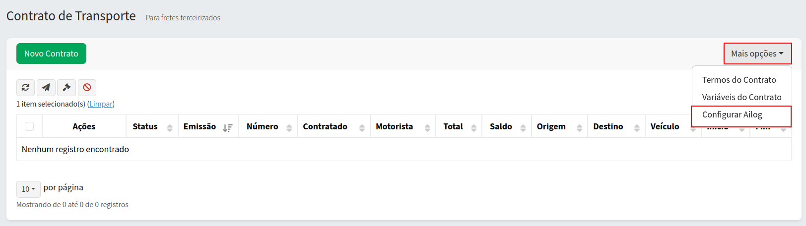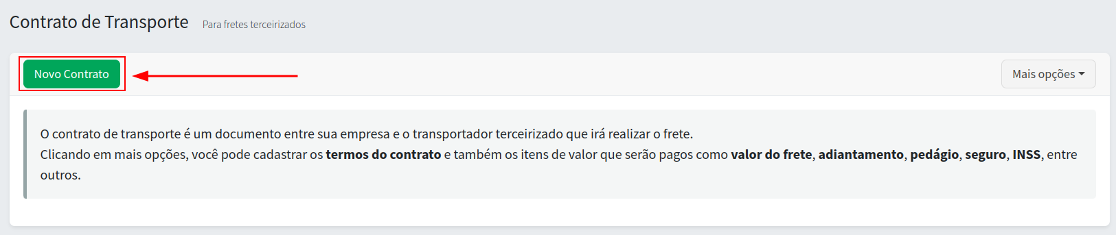O próximo passo é emitir o CIOT, para fazer isso clique no botão "Novo Contrato":