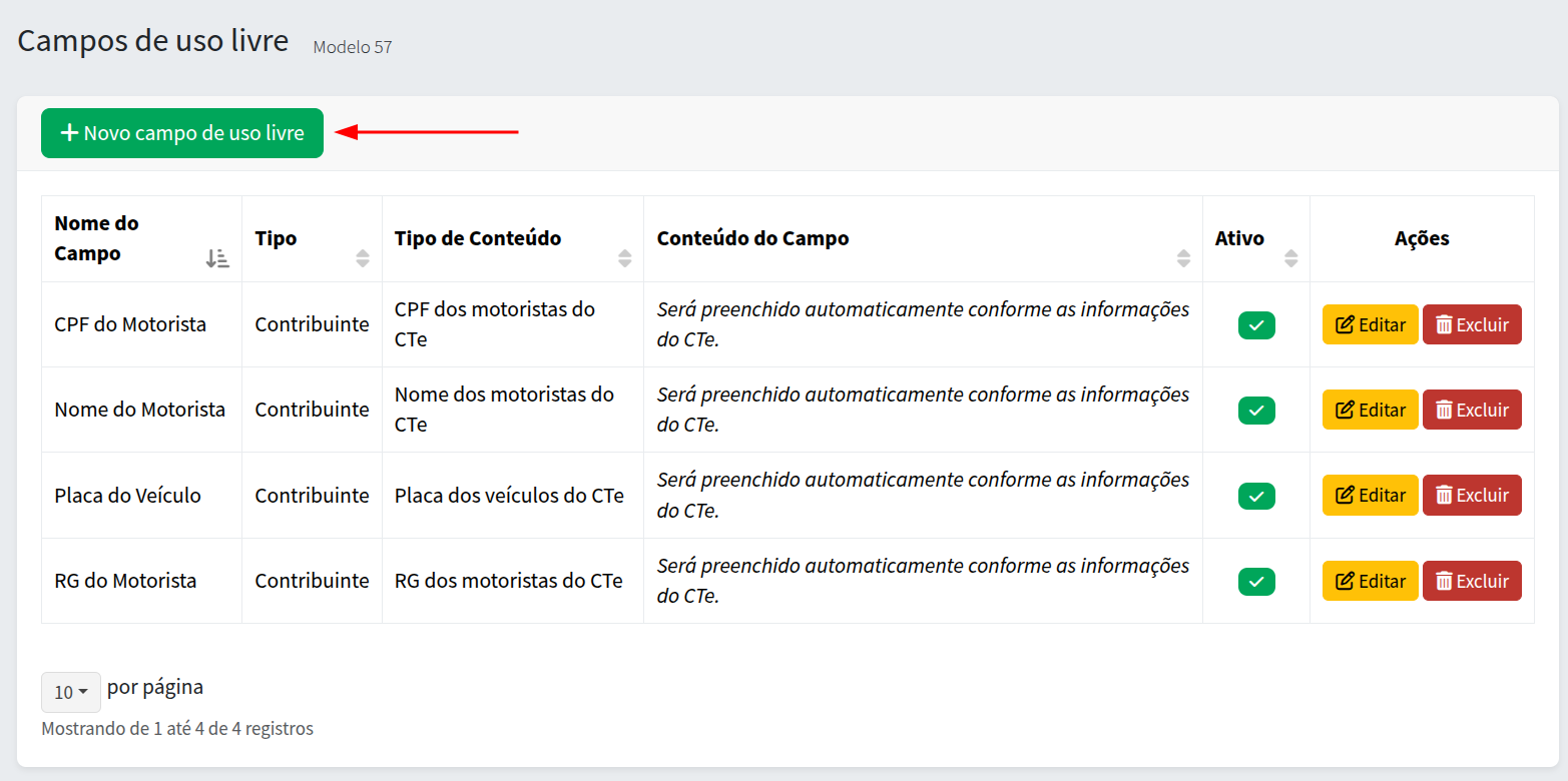 Veja que já possuo alguns desses campos cadastrados, como o CPF do Motorista e a