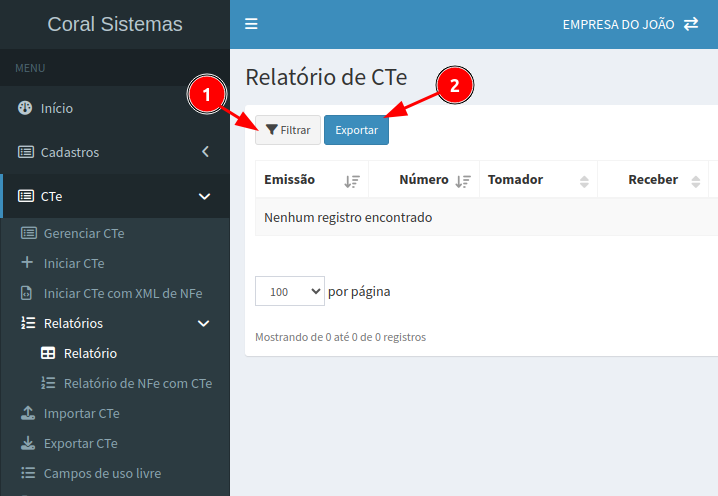 Um relatório é muito útil para analisar o faturamento, principalmente porque pode ser filtrado os CTe por vários dados.