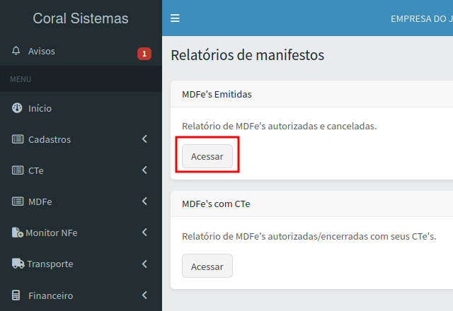 Como gerar relatório de MDFe emitidos