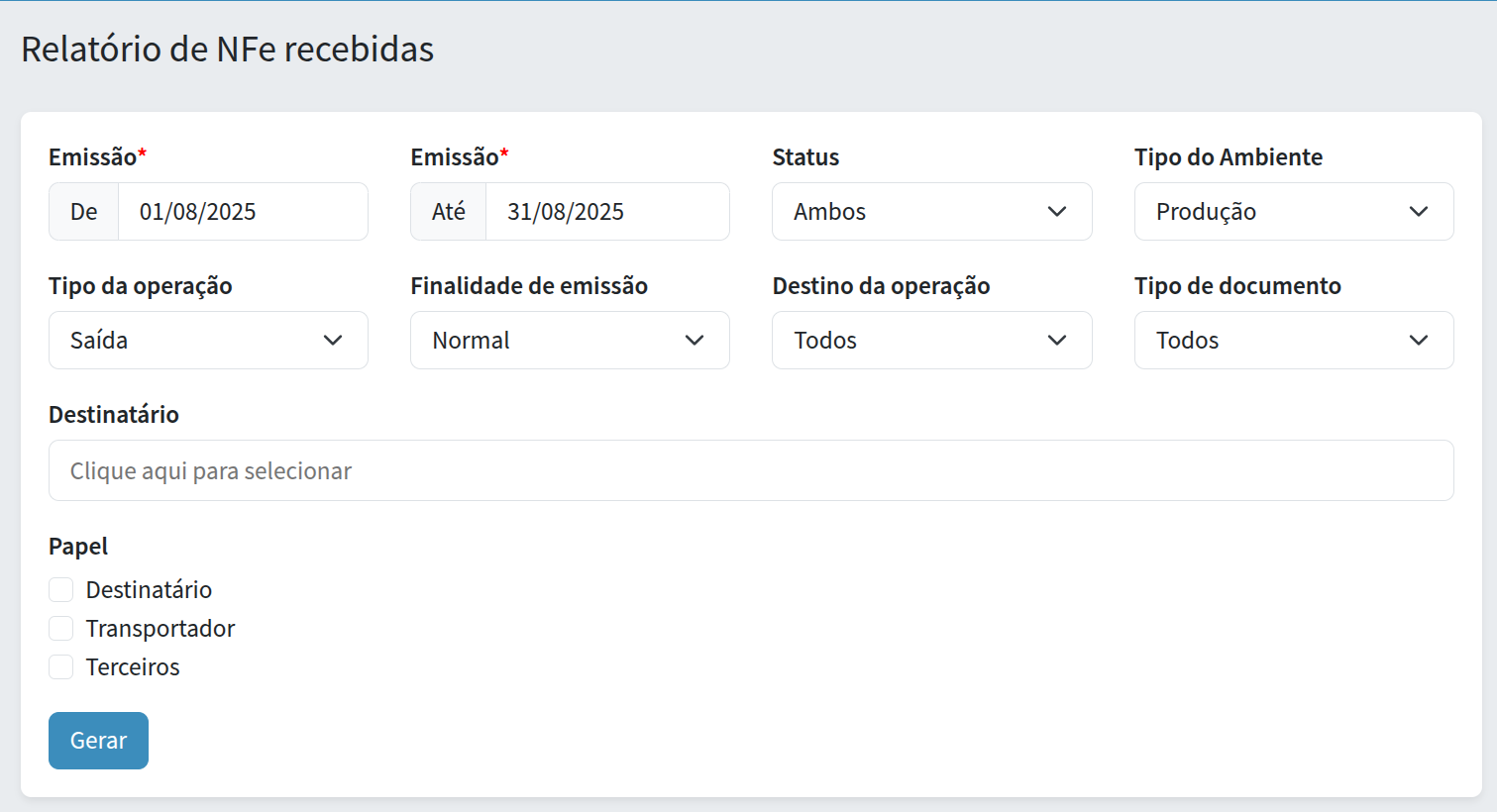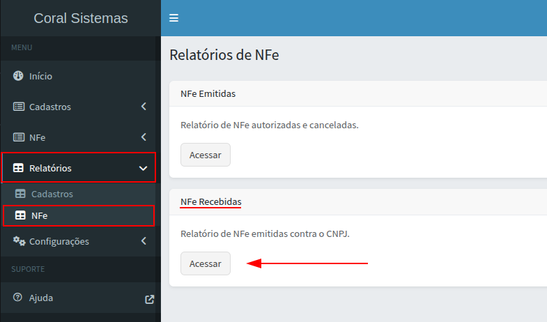 Como gerar relatórios de NFe recebidas
