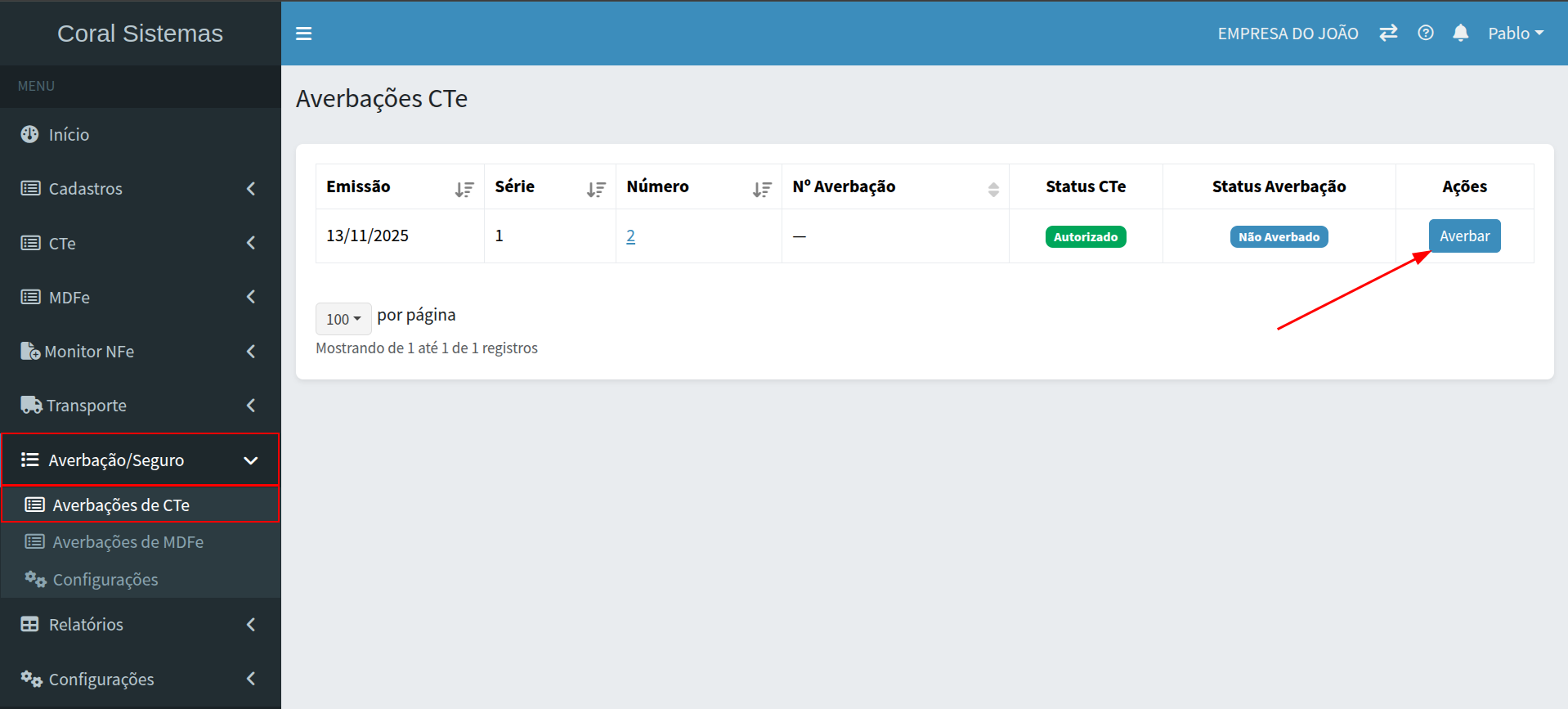 Agora já está pronto para começar a averbar os CTes. Veja abaixo como é simples
