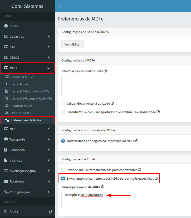 Configurar envio automático de e-mail ao emitir MDFe