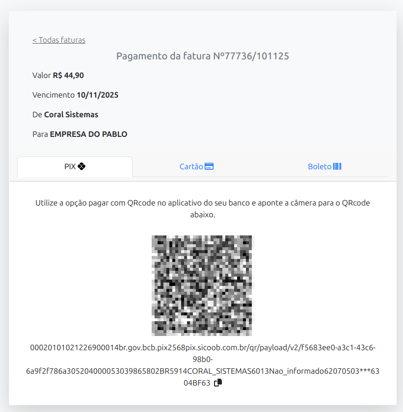 Após clicar em Pagar, abrirá uma outra página para você escolher o método de pagamento da fatura
